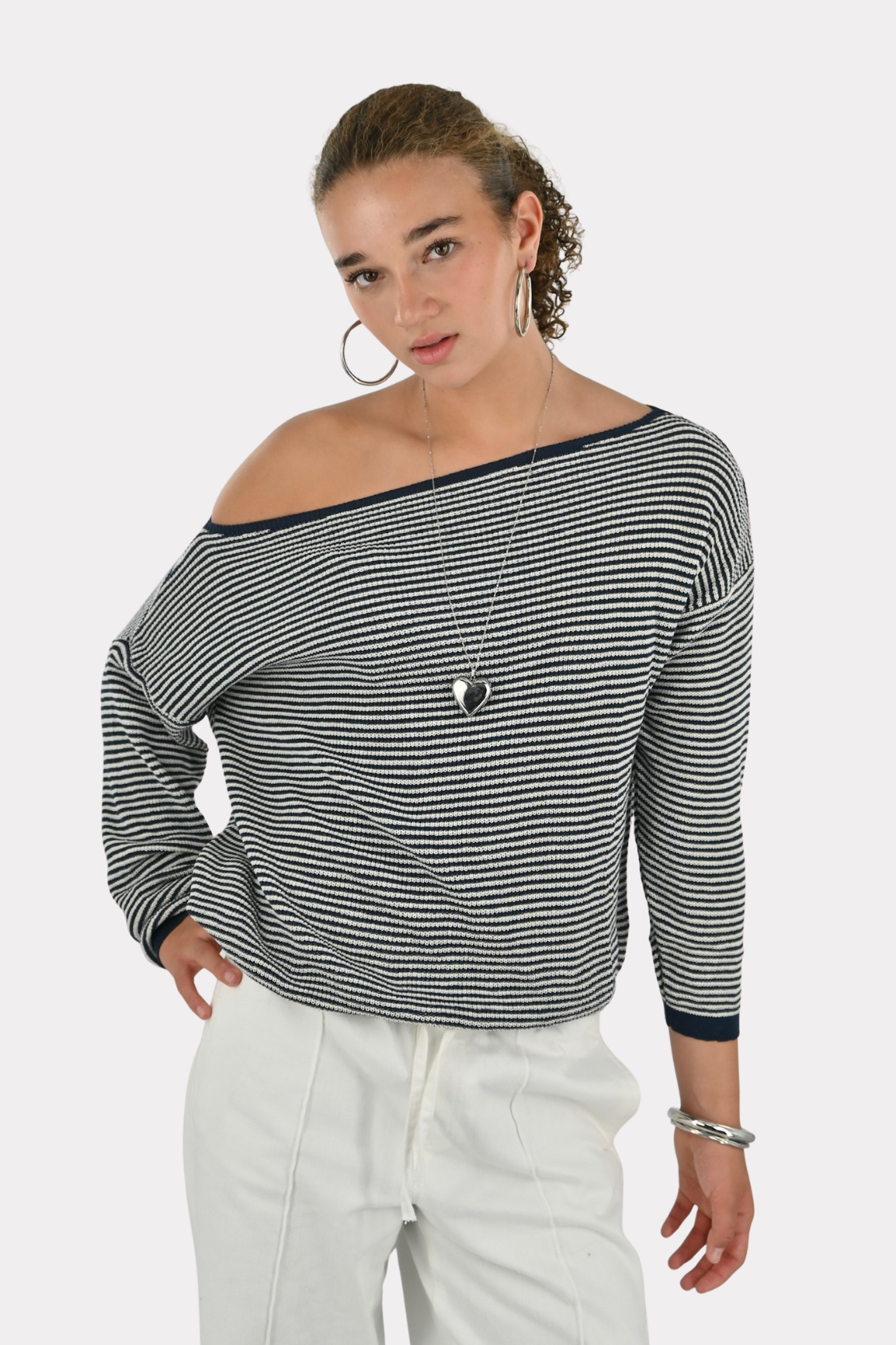 Menthe off shoulder knit - navy