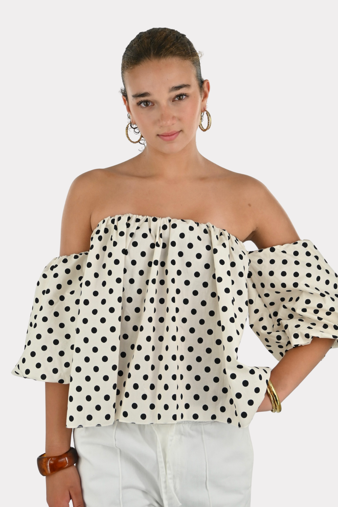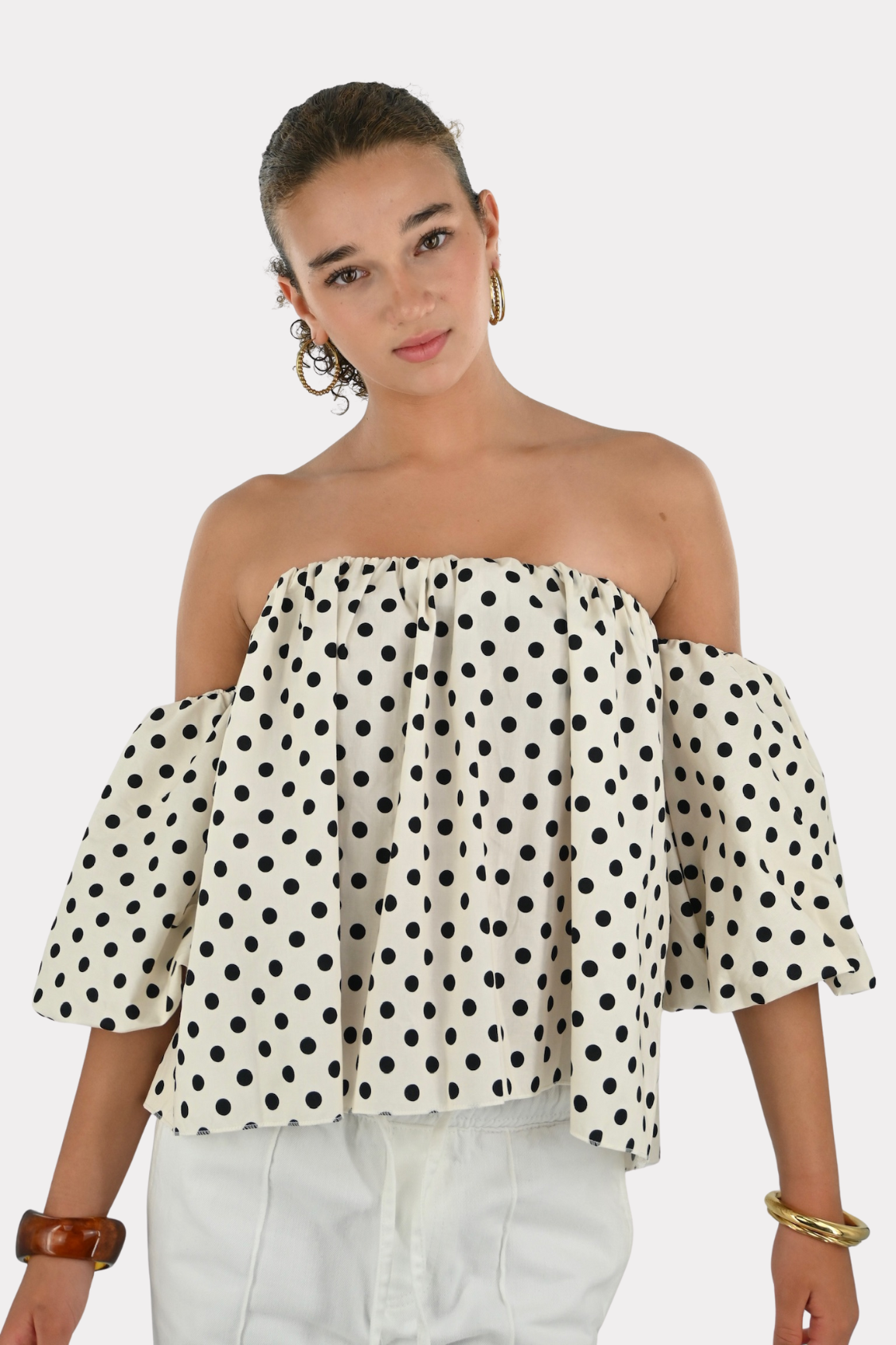 Menthe off shoulder knit - beige