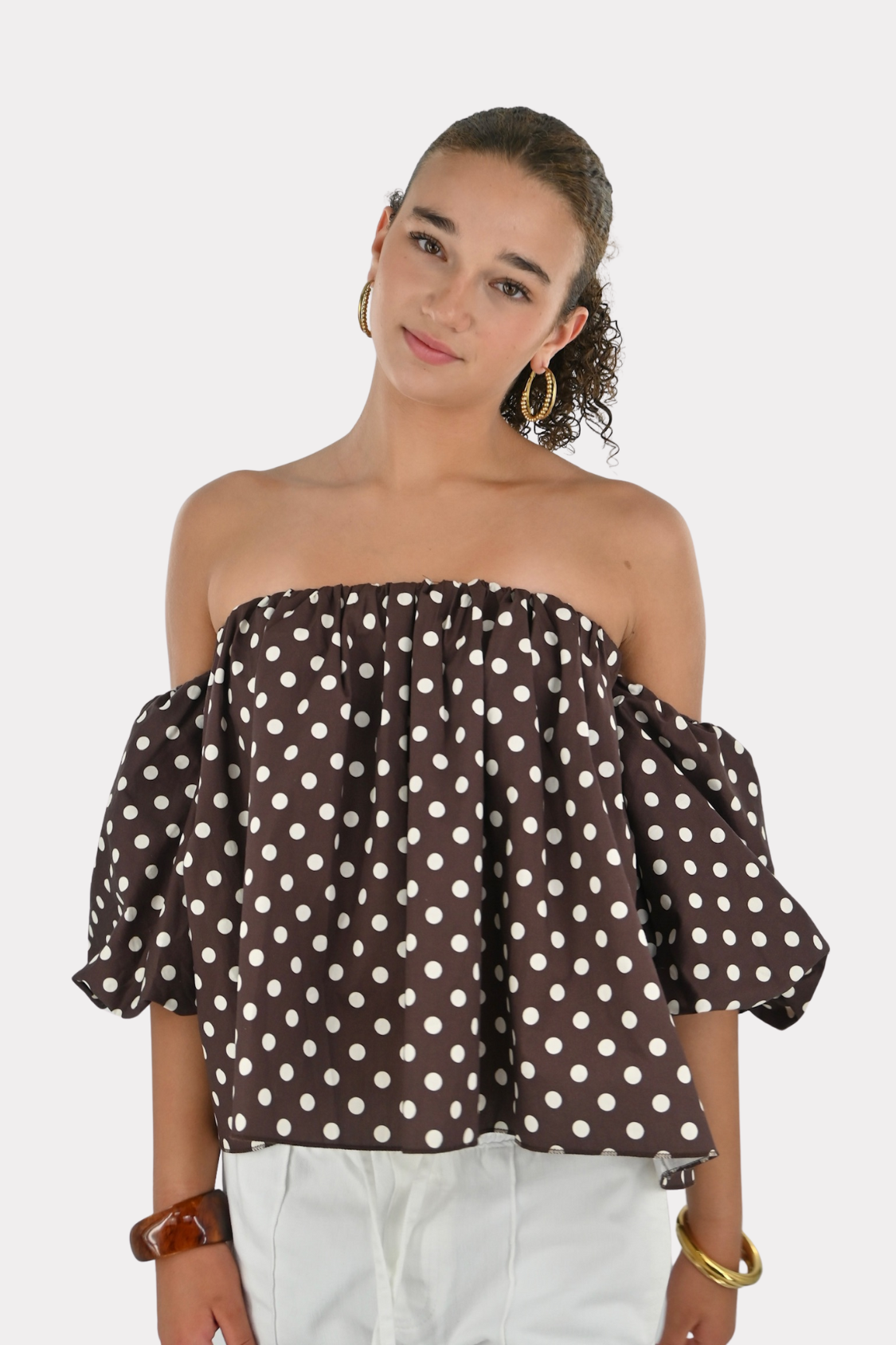 Menthe off shoulder knit - brown